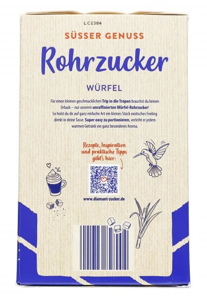 Diamant Würfelzucker ist als unraffinierter Zucker in der Vollwertküche sehr beliebt. Durch seine praktische Würfelform und seine aromatische Note eignet er sich auch hervorragend zum Süßen von Heißgetränken aller Art.