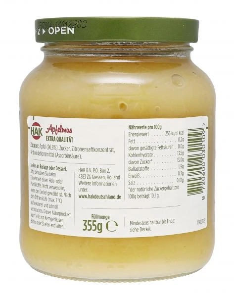 Für dieses Apfelmus wählt HAK die besten und aromatischsten Äpfel aus und bereitet sie nach einer speziellen HAK-Rezeptur zu. Damit erhalten wir ein Apfelmus von allerbester Qualität mit einem vollendeten Geschmack.